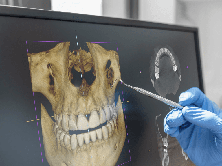 CBCT cone beam technology is like a 3-D tour of your mouth. This high-tech scan helps us plan dental implants, root canals, bone grafts, and more with amazing precision.